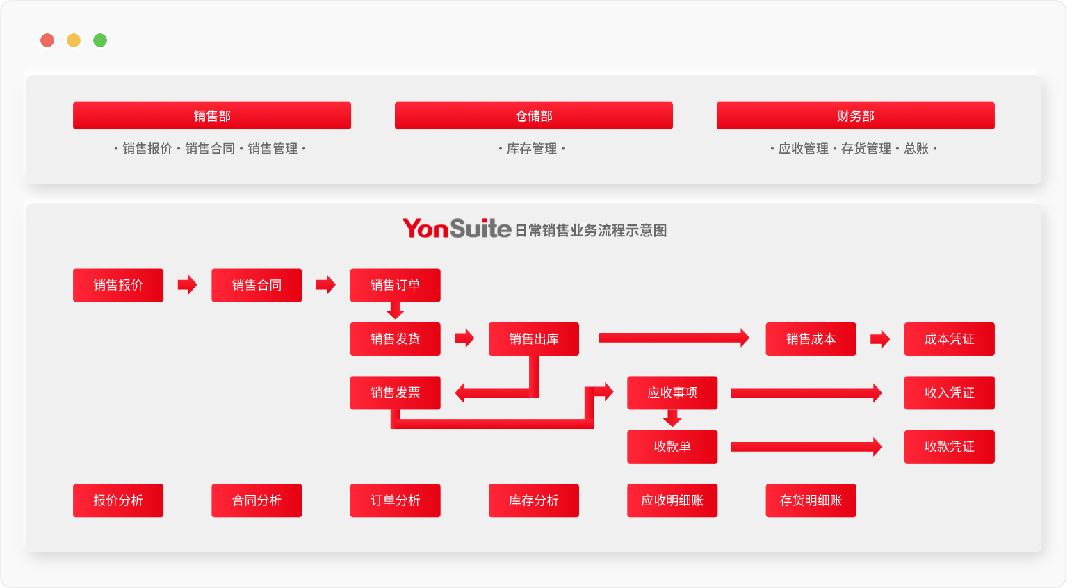 YonSuite 供應鏈云主要實現供應鏈與各領域云深度融合,完善核心業務場景,自由選擇多端登陸,使企業高效實現供應鏈業務協同。主要涵蓋了銷售報價、銷售合同、銷售管理、內部交易、采購管理、庫存管理、條碼管理等功能特性。
