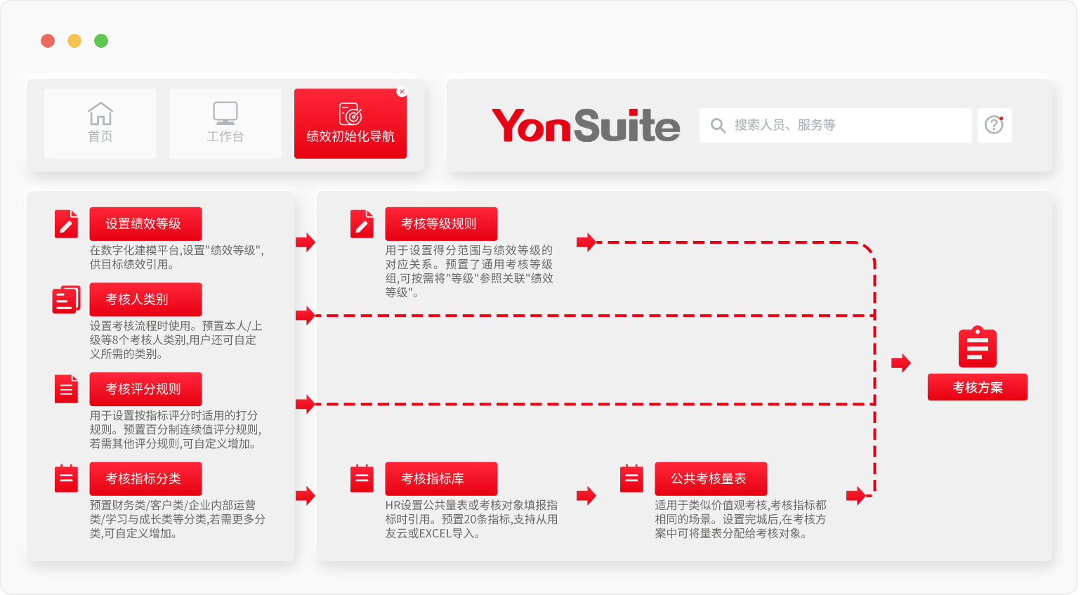 通過使用用友YonSuite人力資源系統,實現人力資源管理工作線上化,組織編制清晰化,崗位職級矩陣化,入轉調離流程化,選用育留智能化,績效考核公平化,人力分析多維化,晉升發展依據化,發薪報稅自動化。